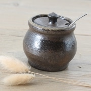 【益子焼】 七味入れ 薬味入れ 炭化焼無地 本体と蓋付き ミニスプーン付き