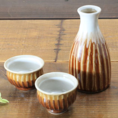 益子焼窯元よこやまの釉薬シリーズ。おしゃれな風合いの酒器セットです。お家晩酌も楽しく、カラフルな風合いに仕上げました。表面には「しのぎ」縦ラインに削り出した模様です。カラーは下記の3カラー!