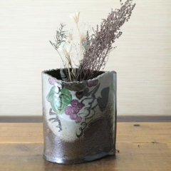 花活け 縦面取り筒花瓶(四角) 布目ぶどう模様 高さ15cm 1点もの¥3,850(税込)商品番号 07260